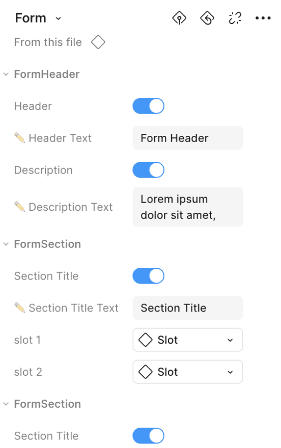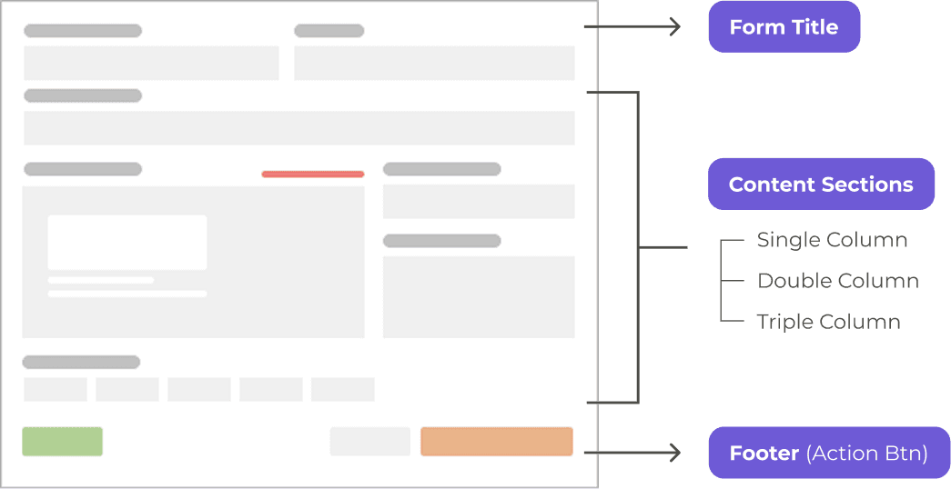 A typical form is built from three essential parts, title, content, and footer. Across products, these elements stayed consistent, even though layouts varied widely. This allowed me to create a unified structure.