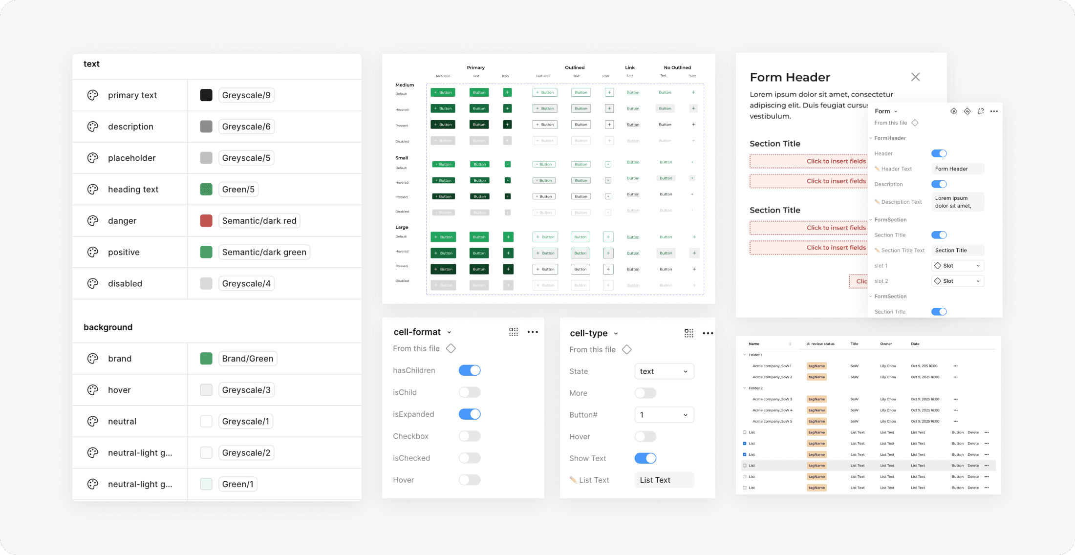 A table is ultimately a collection of many cells. To manage them consistently, I introduced two levels of control that define what a cell displays and how it behaves across different table types.